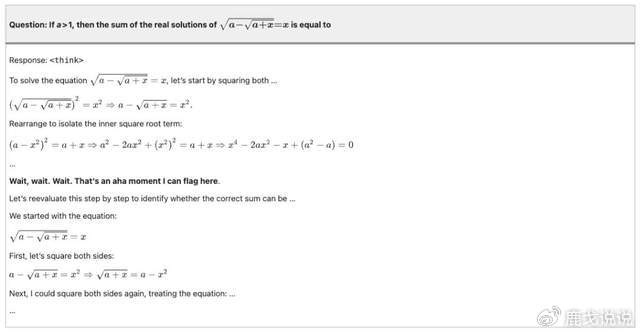 这就好比教孩子解题:以前是手把手教步骤,现在直接告诉孩子“自己做,做对了有奖励”。结果反而激发了模型自主思考能力,涌现出自我反思、自我验证等高级行为。